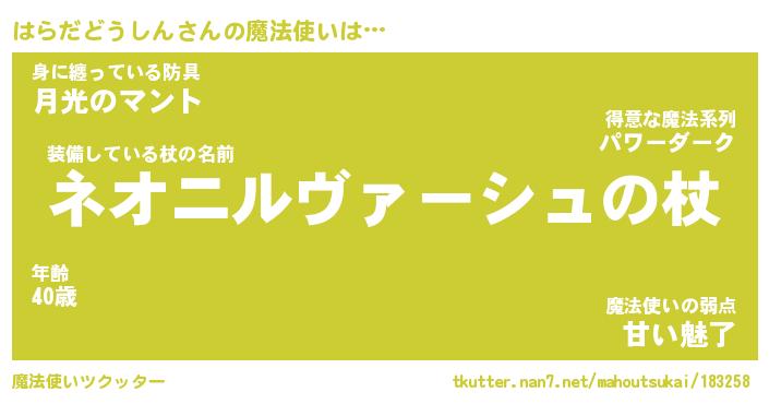 | 胡散臭い通販商品みたいなあだ名 | 『モテモテ間違いなし霊験あらたかなお札…その名も「はらだどうしん」』 |