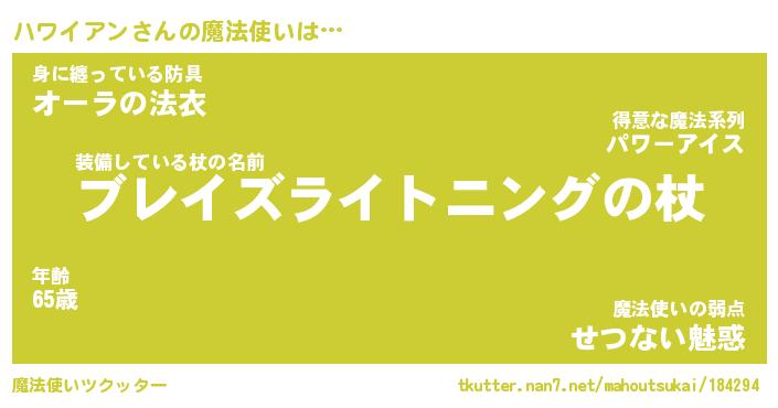 | ヒーロー風カッコイイあだ名 | 『スーパーハワイアン』『幻影騎士ハワ』 |