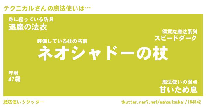| ファンタジー風あだ名 | 『テクフェル』『エターナルテクニカルー』 |