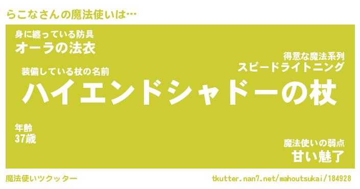 | ファンタジー風あだ名 | 『ラコフェル』『エターナルラコナー』 |