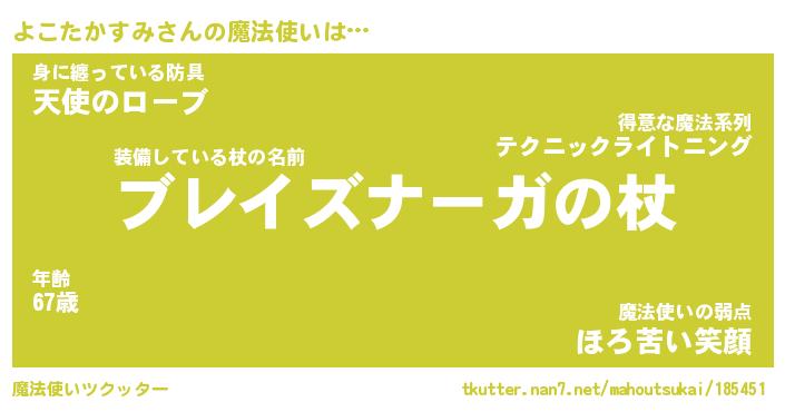 | ヒーロー風カッコイイあだ名 | 『スーパーヨコタカスミ』『黄金騎士ヨコ』 |