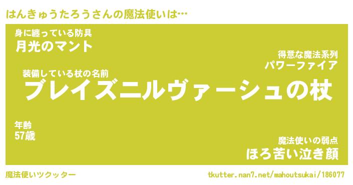 | 男性向けラノベタイトル風あだ名 | 『はんきゅうたろうの憂鬱』 |