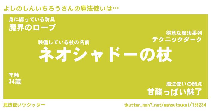 | ツイッター | よしのしんいちろうさんのツイッターID『masyumaro_star』 |