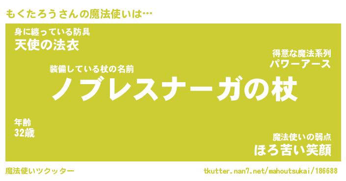 | ファンタジー風あだ名 | 『モクフェル』『エターナルモクタロウー』 |