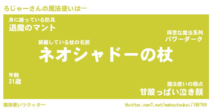 | 男性向けラノベタイトル風あだ名 | 『ろじゃーの憂鬱』 |