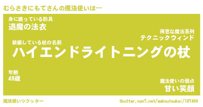 | 男性向けラノベタイトル風あだ名 | 『ムラサキニモテアートオンライン』 |