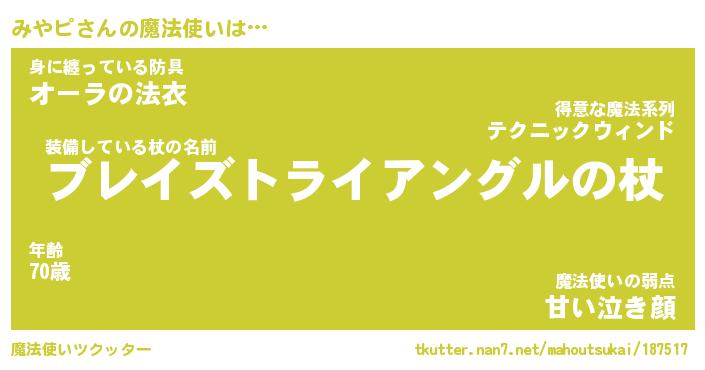| ファンタジー風あだ名 | 『ミヤフェル』『エターナルミヤピー』 |