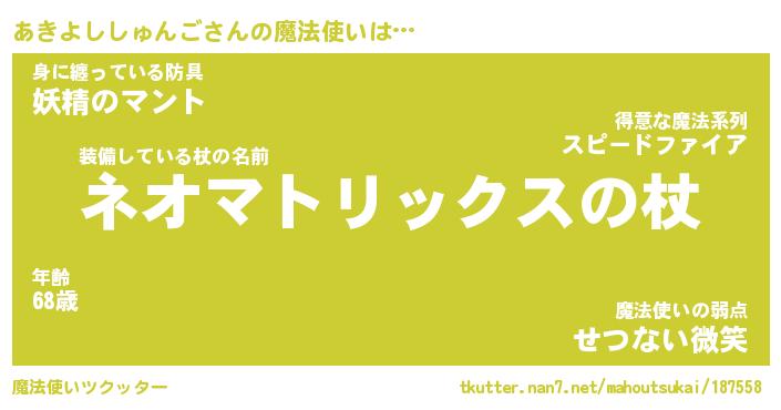 | 肩書あだ名 | 『あきよししゅんご社長』 |