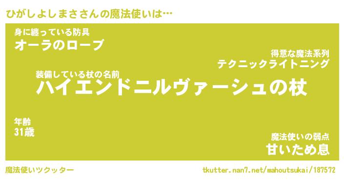 | 肩書あだ名 | 『ひがしよしまさ御曹司』 |