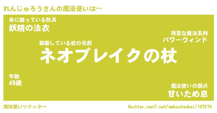 | 男性向けラノベタイトル風あだ名 | 『れんじゅろうの憂鬱』 |