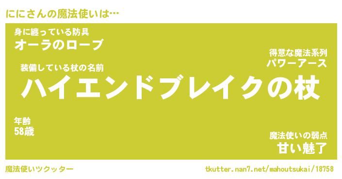 | 伝説のあだ名 | 『封印されし傭兵にに』『孤高の僧侶にに』 |