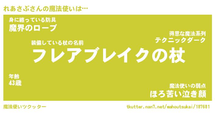 | 伝説のあだ名 | 『伝説の傭兵れあさぶ』 |
