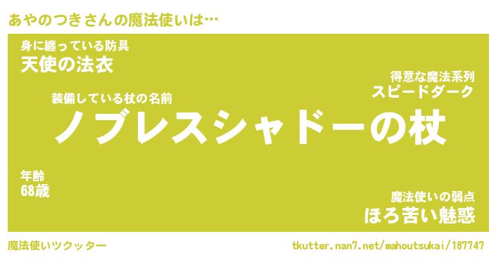 | ファンタジー風あだ名 | 『アヤフェル』『エターナルアヤノツキー』 |