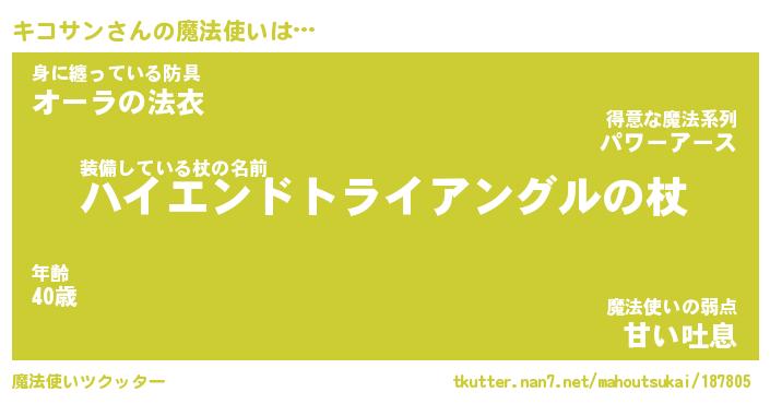 | ファンタジー風あだ名 | 『キコフェル』『エターナルキコサンー』 |