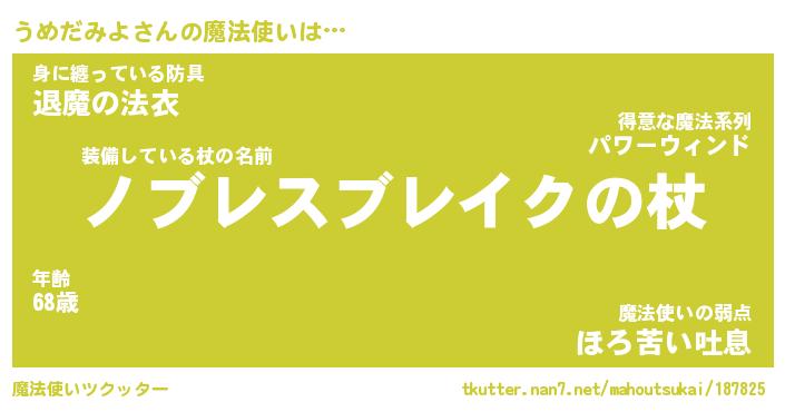 | ファンタジー風あだ名 | 『ウメフェル』『エターナルウメダミヨー』 |