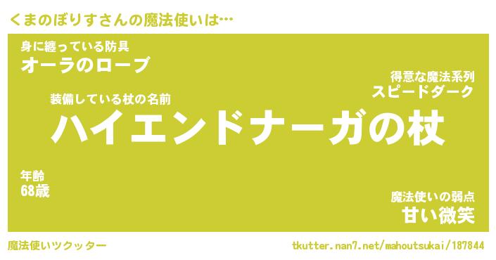 | 伝説のあだ名 | 『封印されしスナイパーくまのぼりす』 |