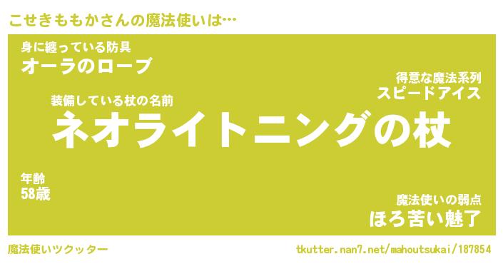 | 伝説のあだ名 | 『不死鳥の傭兵こせきももか』 |