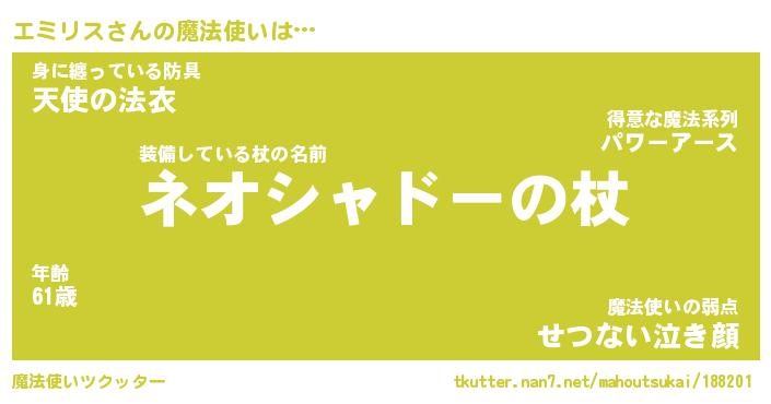 | ヒーロー風カッコイイあだ名 | 『スーパーエミリス』『幻影騎士エミ』 |