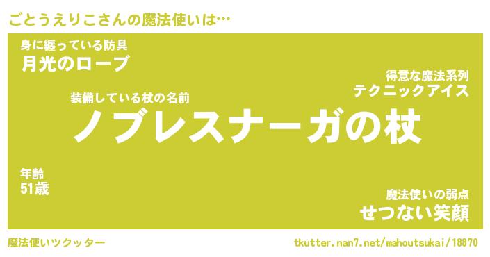 | 男性向けラノベタイトル風あだ名 | 『ゴトウエリコアートオンライン』 |