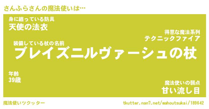 | 意味不明あだ名 | 『ペロリンさんふら』『永久保存さんふら』 |