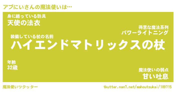 | 伝説のあだ名 | 『封印されし竜騎士アブにい』 |
