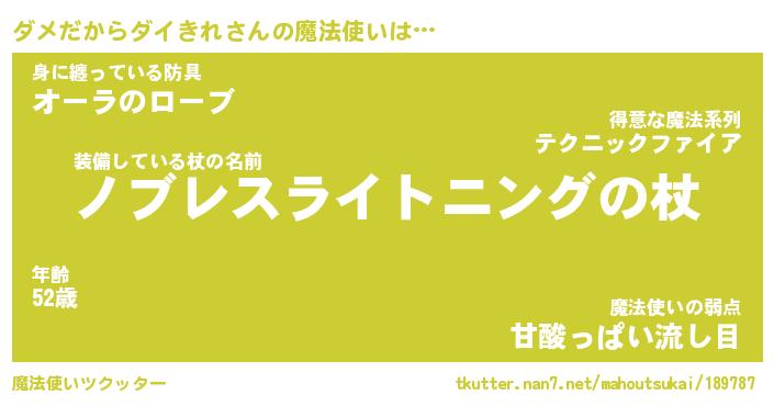 | 男性向けラノベタイトル風あだ名 | 『ダメダカラダイキレアートオンライン』 |