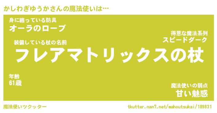 | 伝説のあだ名 | 『伝説の竜騎士かしわぎゆうか』 |