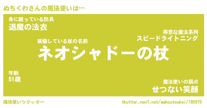 | ヒーロー風カッコイイあだ名 | 『スーパーヌチクワ』『天弓騎士ヌチ』 |