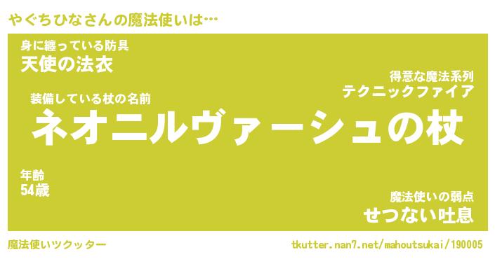 | ヒーロー風カッコイイあだ名 | 『スーパーヤグチヒナ』『炎刃騎士ヤグ』 |