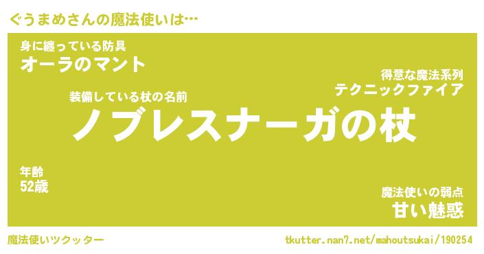| ファンタジー風あだ名 | 『グウフェル』『エターナルグウマメー』 |