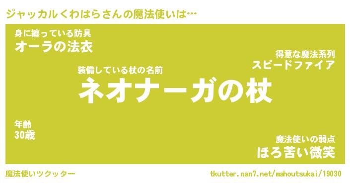 | 男性向けラノベタイトル風あだ名 | 『ジャッカルくわはらの憂鬱』 |