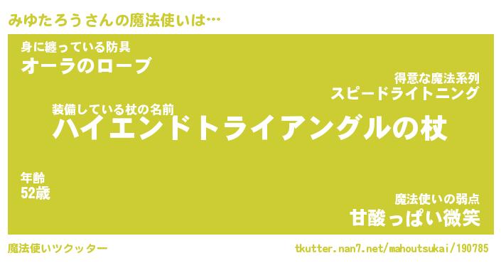 | ファンタジー風あだ名 | 『ミユフェル』『エターナルミユタロウー』 |