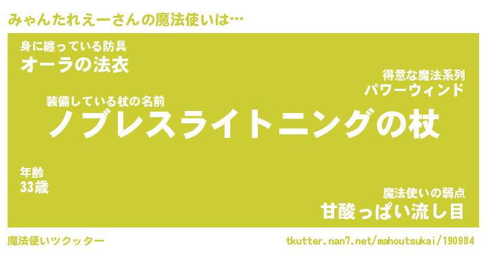 | 伝説のあだ名 | 『封印されし竜騎士みゃんたれえー』 |