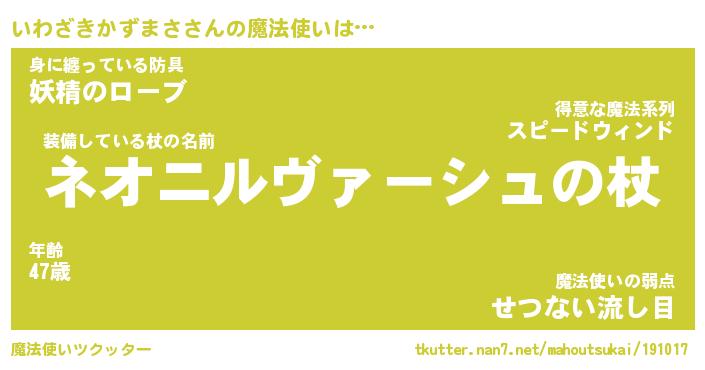 | 肩書あだ名 | 『いわざきかずまさ御曹司』 |