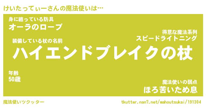| 伝説のあだ名 | 『封印されし傭兵けいたってぃー』 |