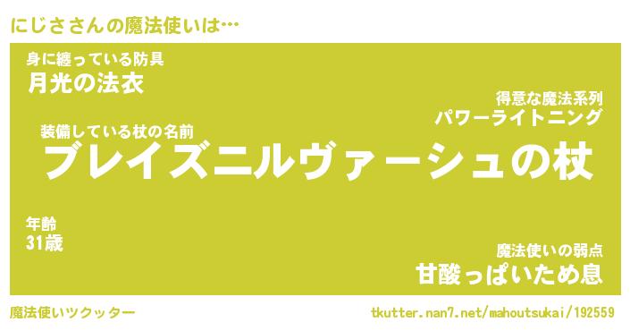 | ファンタジー風あだ名 | 『ニジフェル』『エターナルニジサー』 |