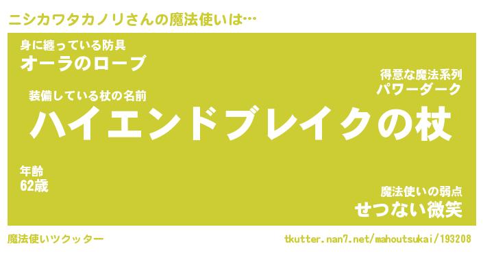 | 肩書あだ名 | 『ニシカワタカノリ店長』 |