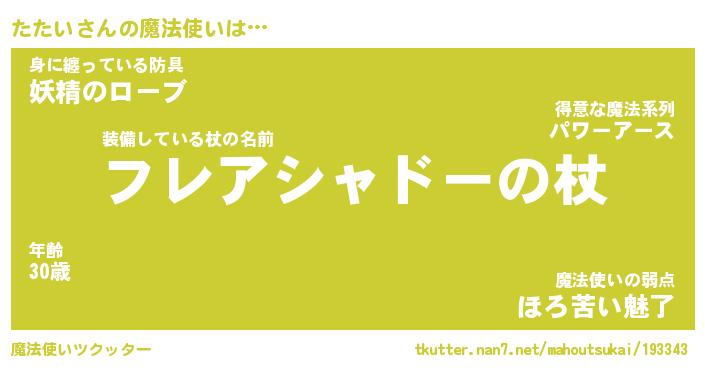 | ファンタジー風あだ名 | 『タタフェル』『エターナルタタイー』 |