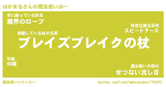| ファンタジー風あだ名 | 『ハカフェル』『エターナルハカマルー』 |