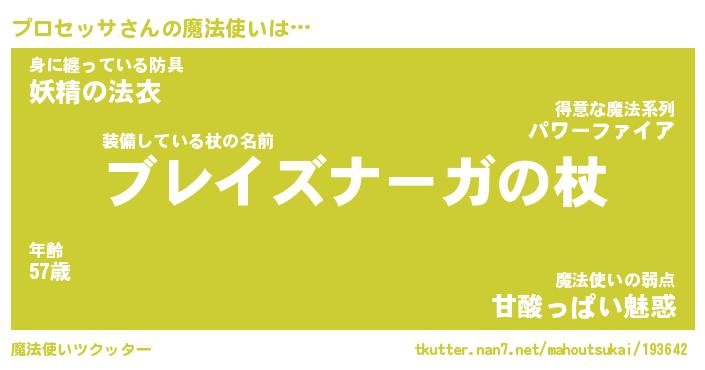 | ファンタジー風あだ名 | 『プロフェル』『エターナルプロセッサー』 |