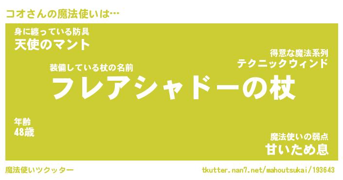 | ファンタジー風あだ名 | 『コオフェル』『エターナルコオー』 |