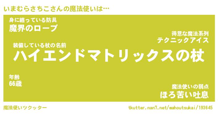 | 伝説のあだ名 | 『封印されし竜騎士いまむらさちこ』 |