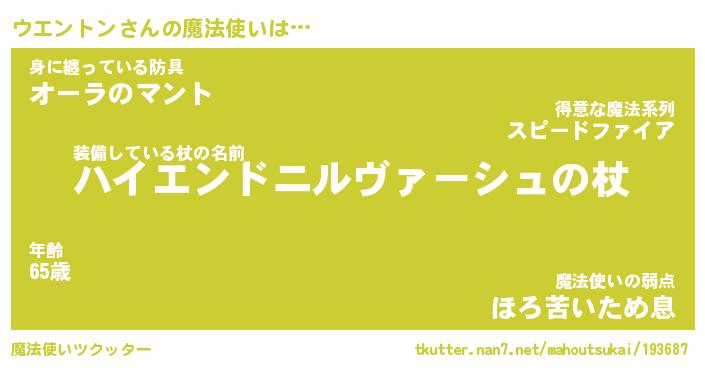 | ファンタジー風あだ名 | 『ウエフェル』『エターナルウエントンー』 |