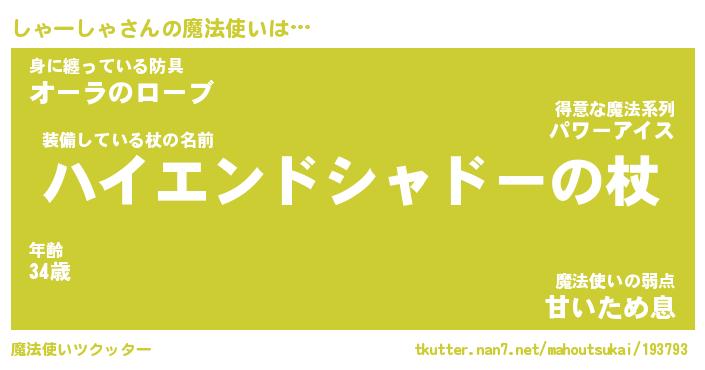 | 伝説のあだ名 | 『封印されし竜騎士しゃーしゃ』 |