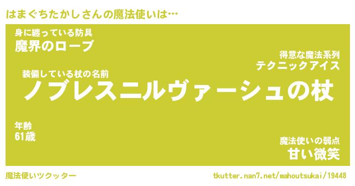| 伝説のあだ名 | 『封印されしスナイパーはまぐちたかし』 |