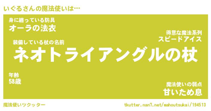 | 男性向けラノベタイトル風あだ名 | 『いぐるの憂鬱』 |