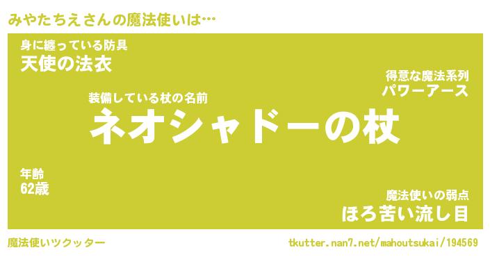 | 肩書あだ名 | 『みやたちえCEO』『みやたちえ総理大臣』 |