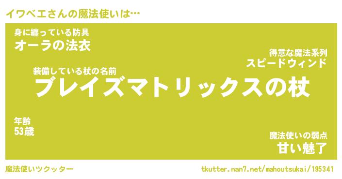| 意味不明あだ名 | 『ペロリンイワベエ』『永久保存イワベエ』 |
