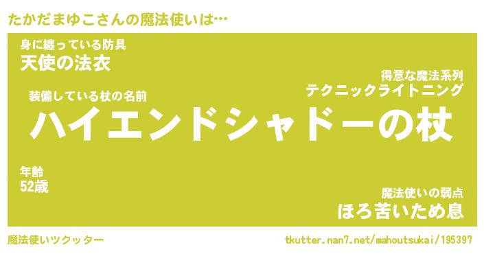 | 肩書あだ名 | 『たかだまゆこCEO』『たかだまゆこ班長』 |