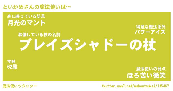 | 男性向けラノベタイトル風あだ名 | 『といかめの憂鬱』 |